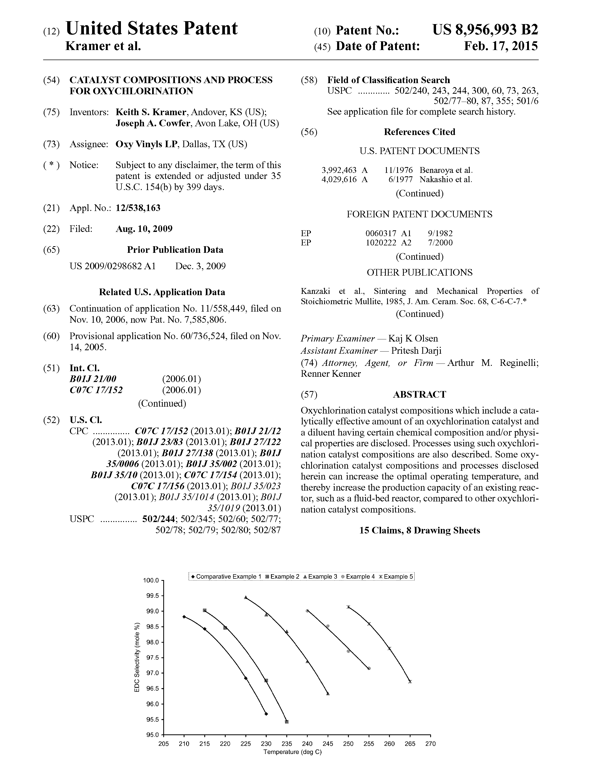 On February 17, 2015 the U.S. Patent and Trademark Office issued U.S. Patent No. 8,956,993, entitled “Catalyst Compositions and Process for Oxychorination.” Oxychlorination catalysts are described that can increase the optimal operating temperature of oxychlorination processes without sacrificing catalyst performance.